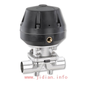 盖米625是一款气动金属隔膜阀。气动头为耐高温塑料材质,压块和内部组件均为不锈钢材质,符合卫生级标准。
